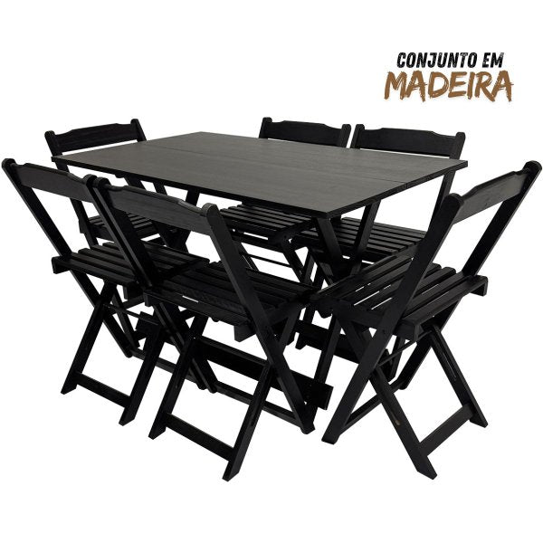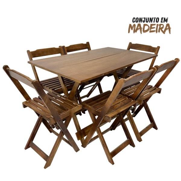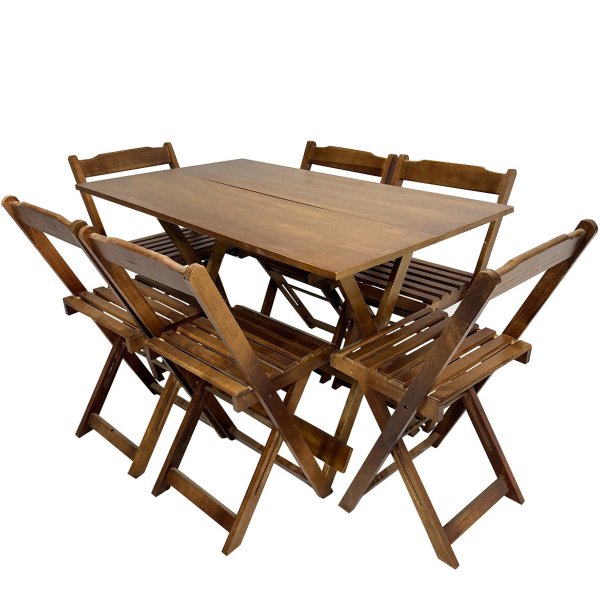 Conjunto Mesa Dobrável 120x70cm com 6 Cadeiras Imbuia: Charme Natural e Praticidade para seu Lar