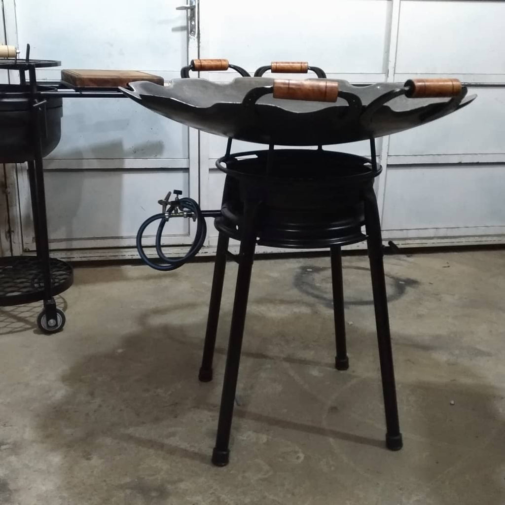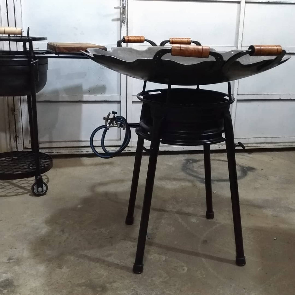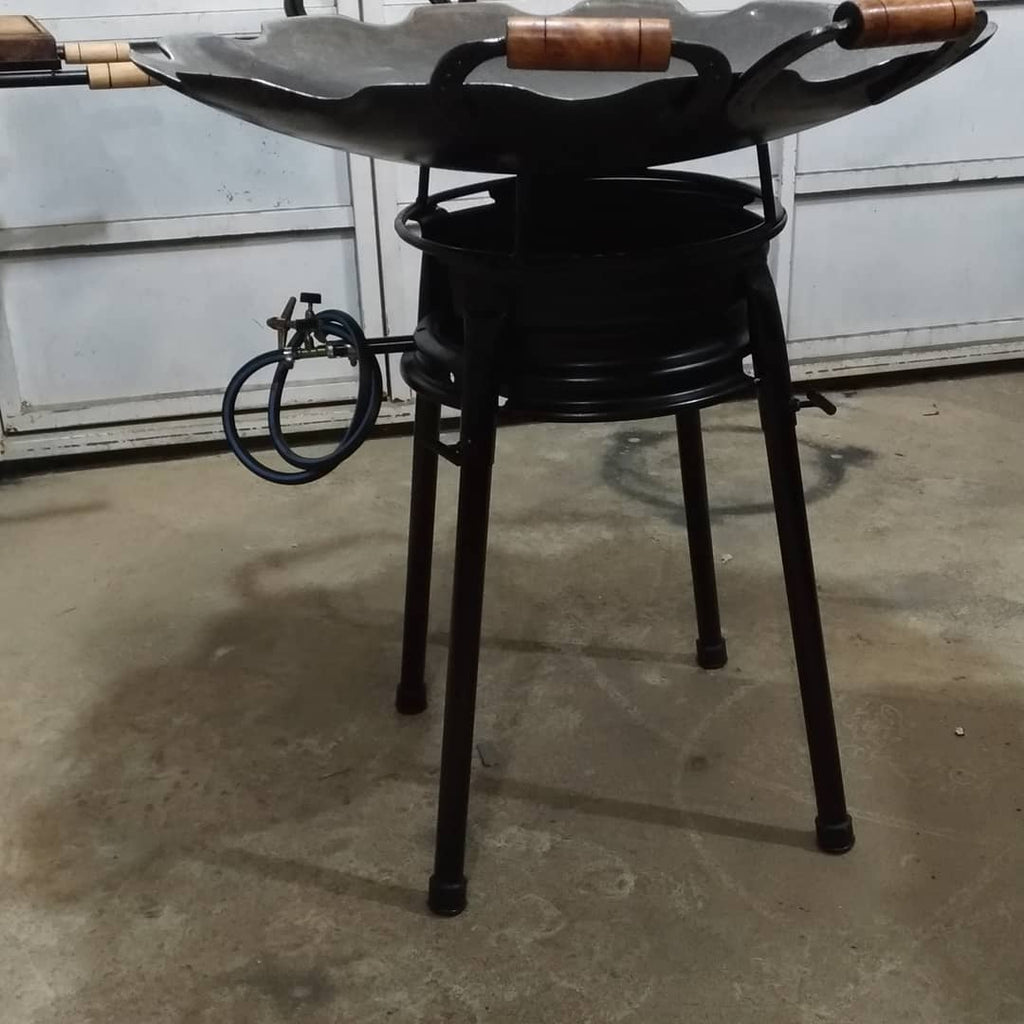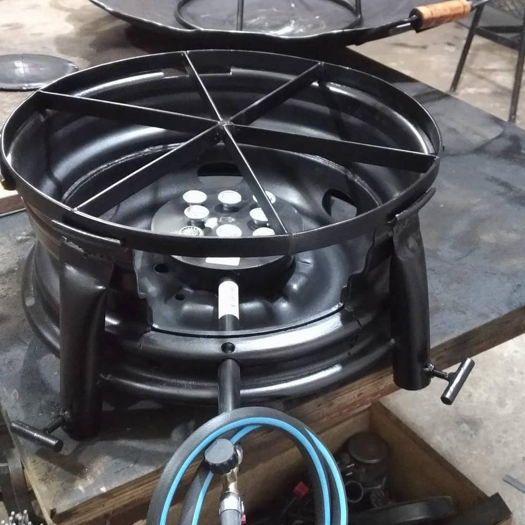 Funciona com botijão de gás GLP (P13 ou P45) e acompanha válvula de regulagem. Ideal para áreas gourmet, sítios, eventos e cozinhas ao ar livre.